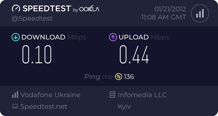 CDMA Украина EVDO Rev.A: тест провести не удалось.
